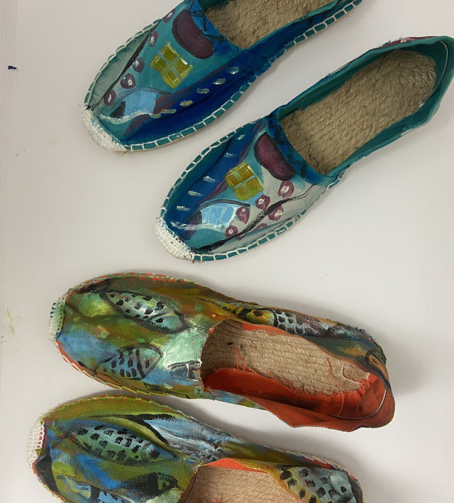 One of kind with 100% vegetable jute sole and 100% cotton fabric on the top, painting or in oil, acrylic or Posca. Signed Renata Castilho