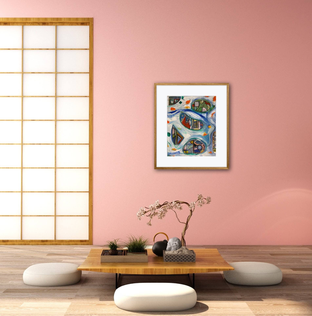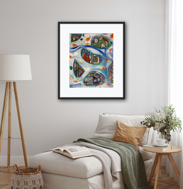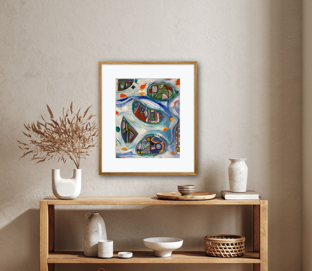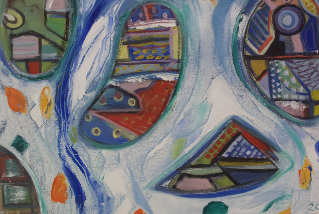 50x40 oil on canvas: Inspired by my new life in the Canary Islands, where without much intention or study, my subconscious, with textures and colors translated the memory of my soul ... Surrounded by the intense sea, various festivities, always very colourful and effervescing delicately joyful emotions
