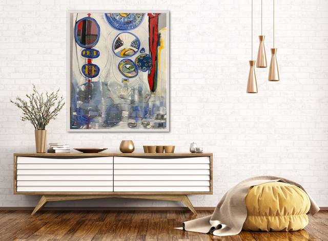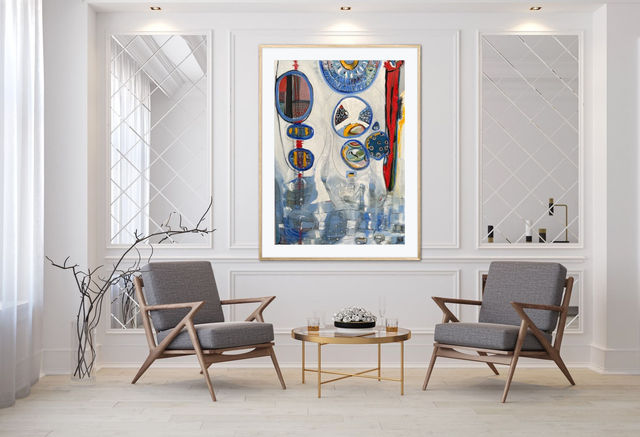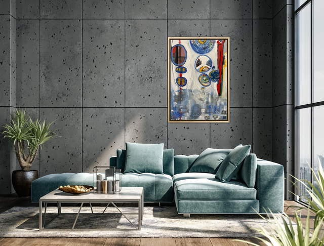 65x90 :Oil on canvas inspired by the idea that each human is an Island and all together we are archipelago where we have our history, or story to tell and our baggage ... but together we are harmony in shapes and forms colors and textures.