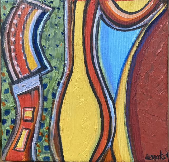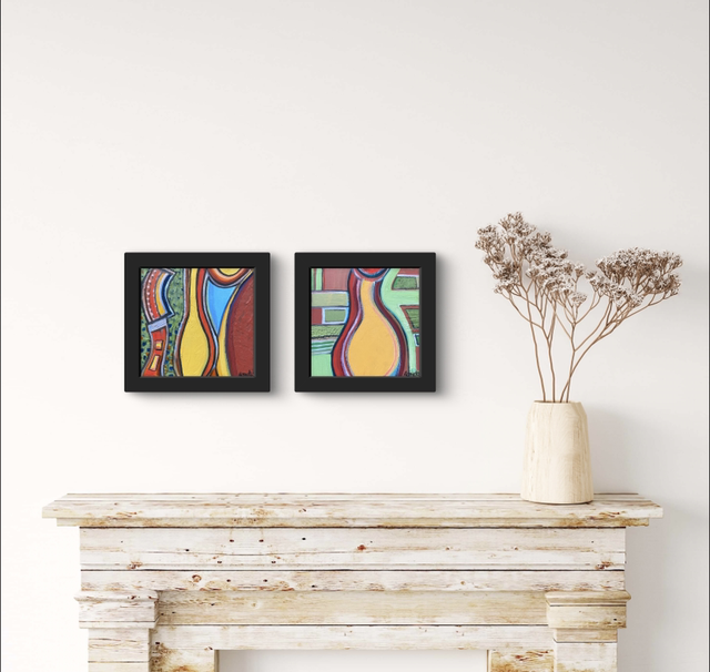 The couple is selling together. #abstract #small_canvas #yellow #amarillo #green #verde #blue #azul #oil_on_canvas #tela #oleo #olio #lienzo