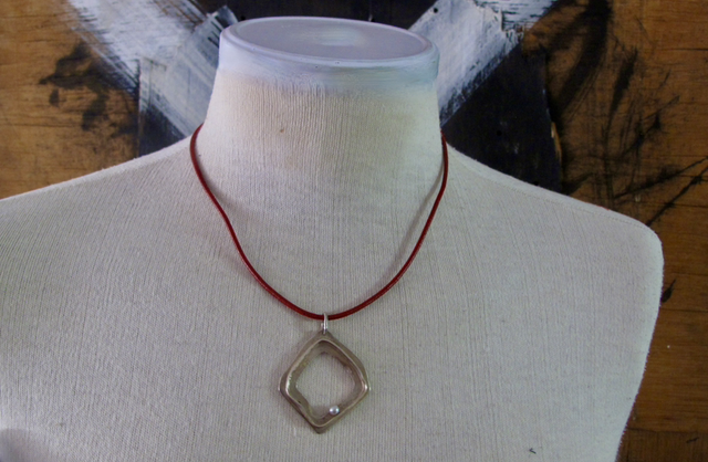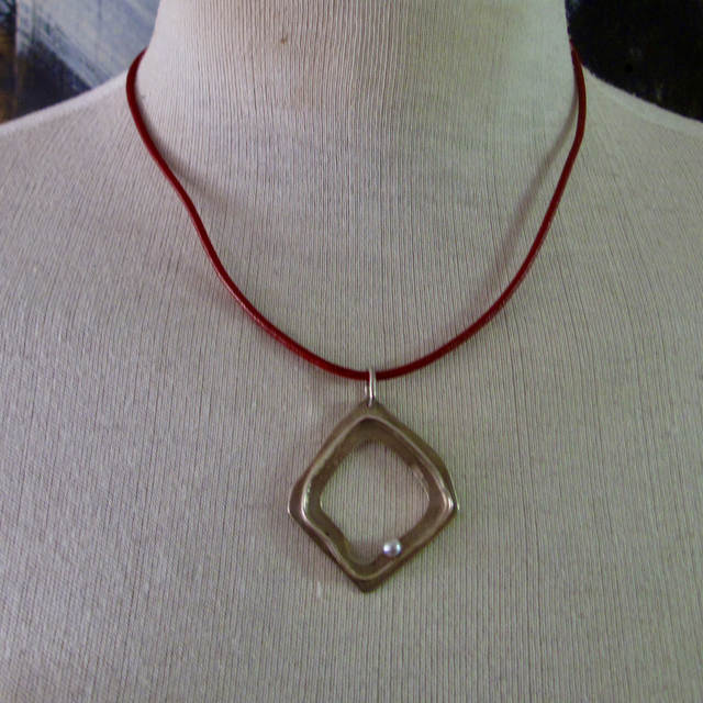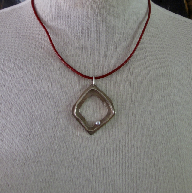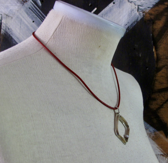 Unique, hand made in silver with natural grey pearl use on leather necklace black.